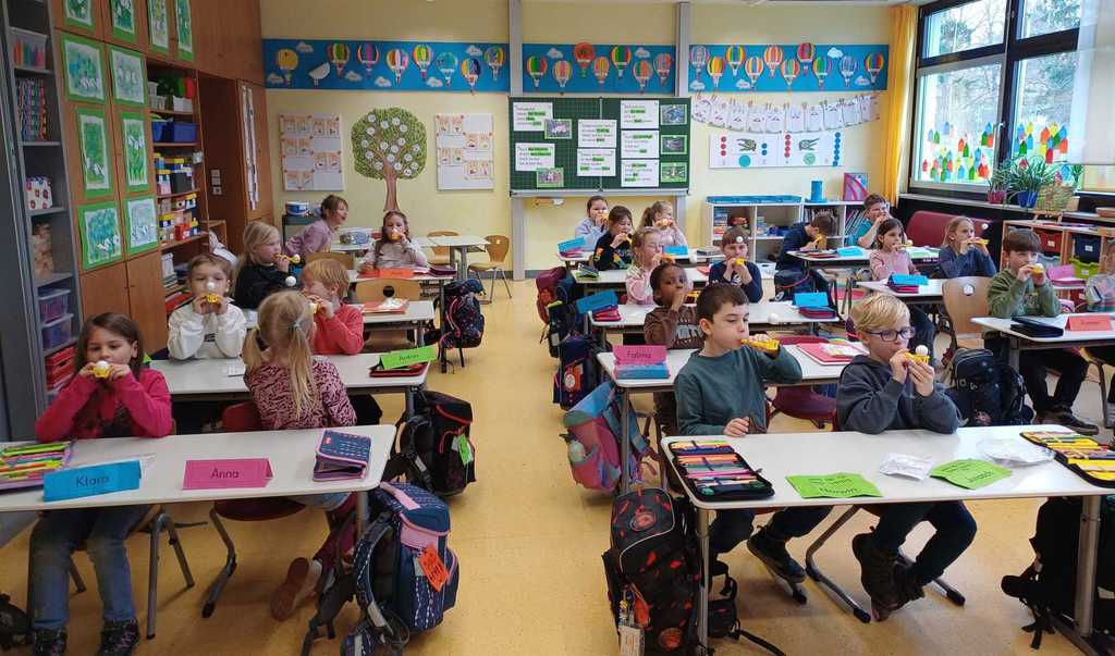 Das Programm begleitet die Kinder von Klasse 1 bis 4. Pro Schuljahr finden ca. 15 Klasse2000-Stunden statt. Ein besonderes Highlight sind die Besuche unserer Klasse2000-Gesundheitsförderin Ingrid Mauer, die mit spannenden Materialien, Experimenten und Spielen neue Inhalte in die Klassen bringt. Die Kinder machen mit großer Begeisterung mit, und auch die Lehrkräfte profitieren für ihren vertiefenden Unterricht davon.