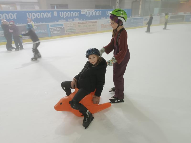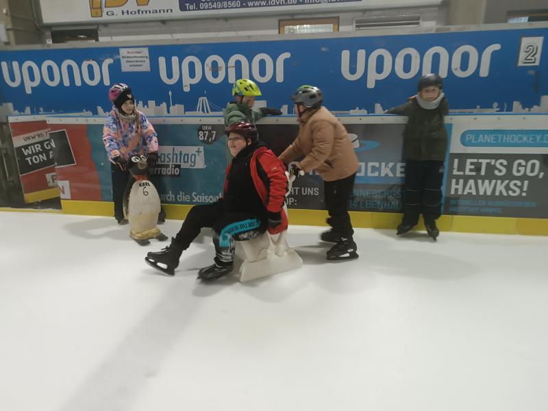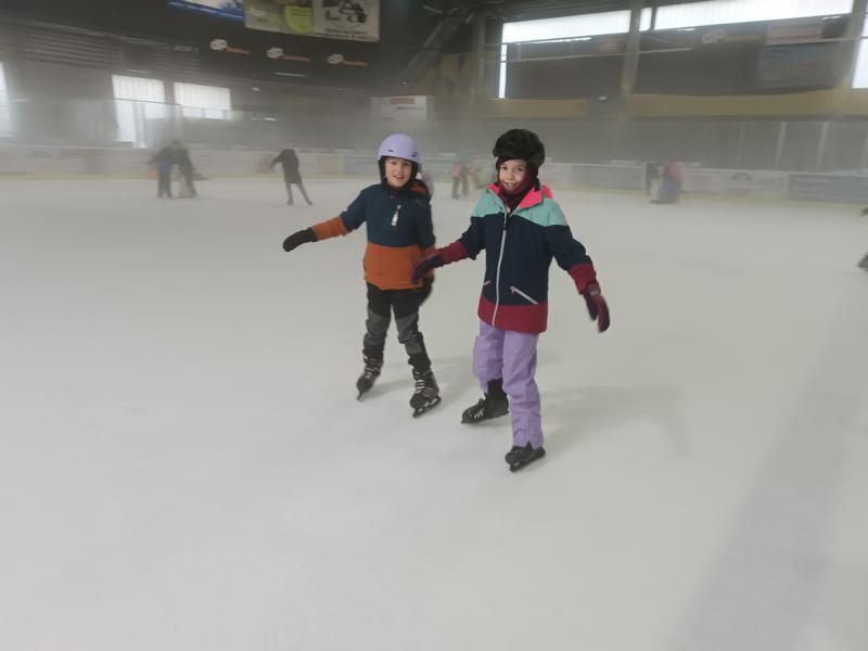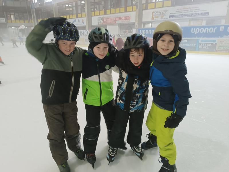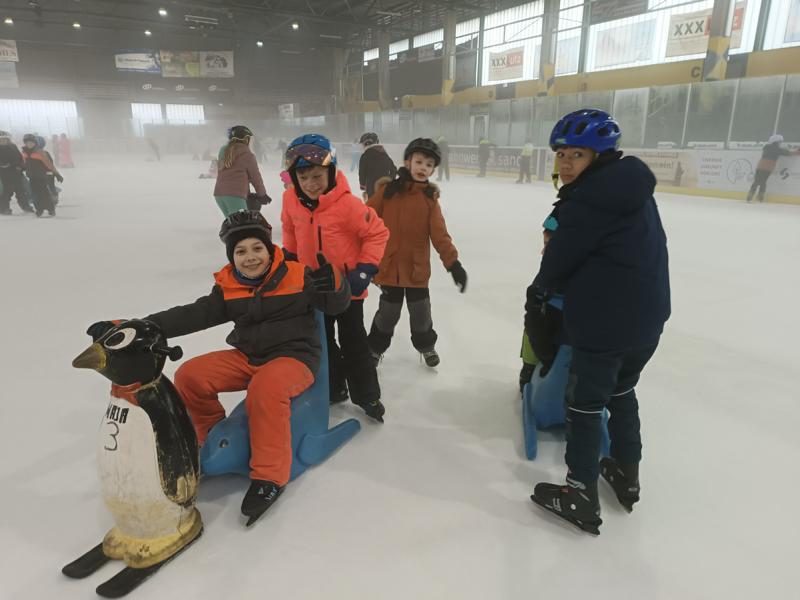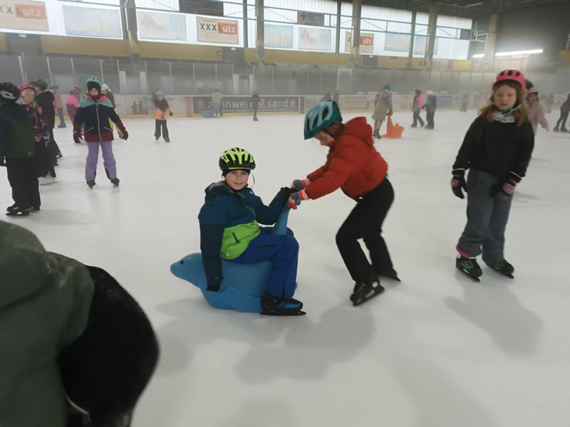 Nach der Ankunft durften die Schüler ihre Schlittschuhe anziehen und sich auf das Eis begeben. Zunächst war es für einige etwas ungewohnt, auf den glatten, rutschigen Flächen zu fahren, doch schnell gewöhnten sich alle an das Gefühl. Mit viel Begeisterung fuhren die Kinder auf dem Eis und genossen die Bewegung und die Gemeinschaft mit ihren Schulkameraden.